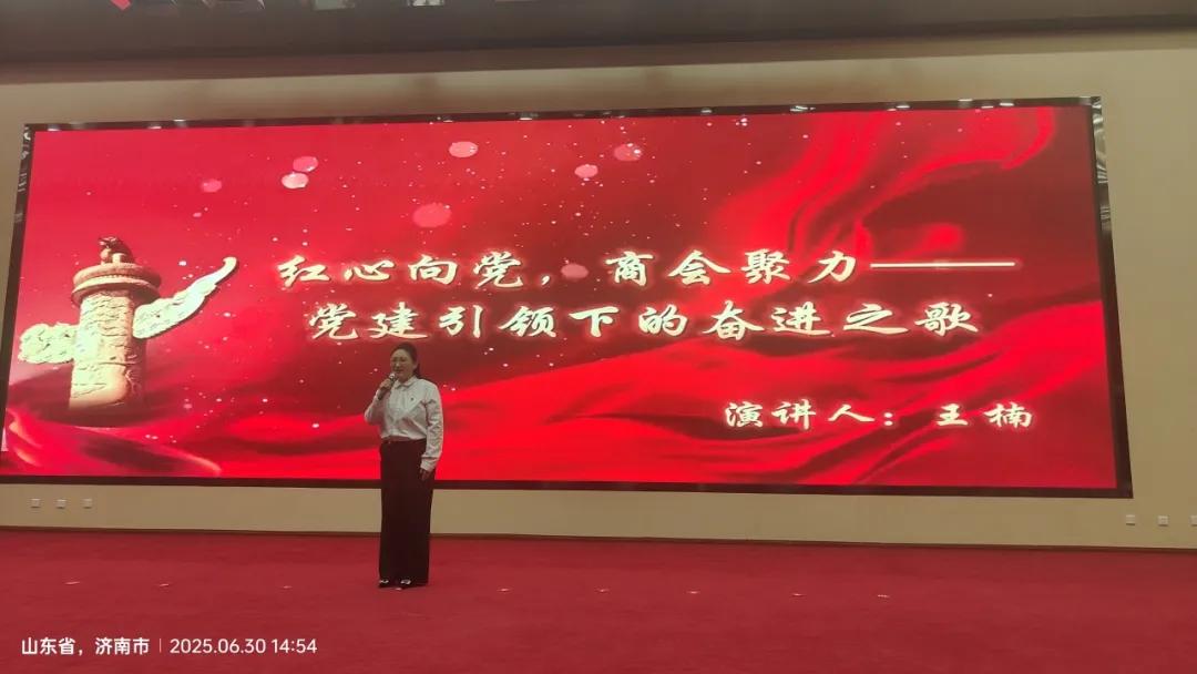 6月30日下午,山东省工商联所属商会“红心向党 商会聚力”主题演讲比赛暨2024年度“两优一先”表彰会议在大众传媒大厦举办。我商会党支部副书记宋少杰,常务副会长王楠等积极参与此次活动,与众多优秀代表共同向党的104周年华诞献礼!