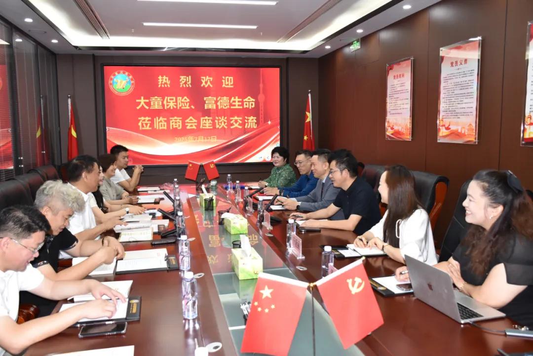 7月17日上午,大童保险山东区域管理中心总经理刘五昌、大童山东金赞平台负责人田明泉、富德生命代理部负责人于亚丽、大童保险业务部负责人江鹏、富德生命山东分公司徐娜、大童家办合伙人安德富承事务所创始人王艺陶一行到商会走访座谈交流。商会党支部书记于吉涛、轮值会长王枝颖、凡保生、常务副会长王国银、执行会长党支部副书记宋少杰、副会长陈朝辉一同座谈。